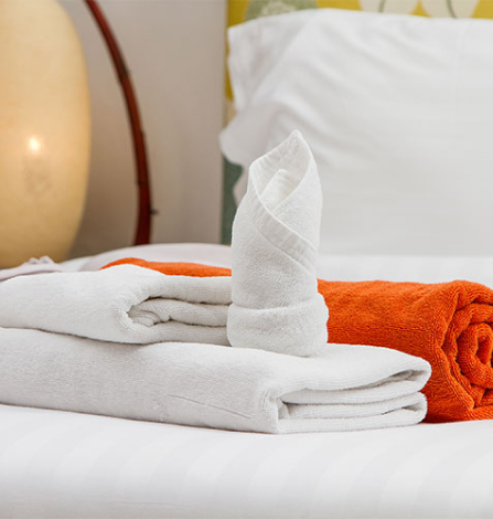 Draps, serviettes et vaisselles incluses.